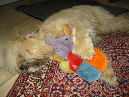 | | | ...mit meinem Körbchen, meinem "Flipper" und Bärchen "Hansi" | |