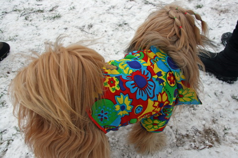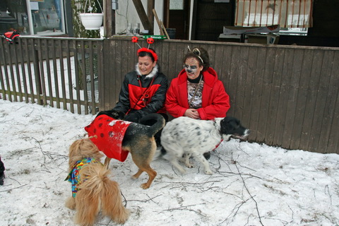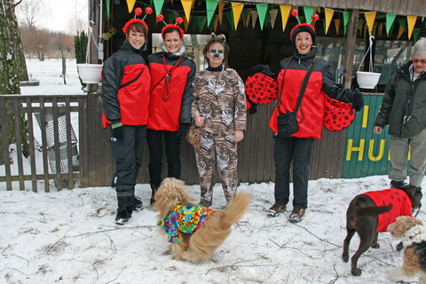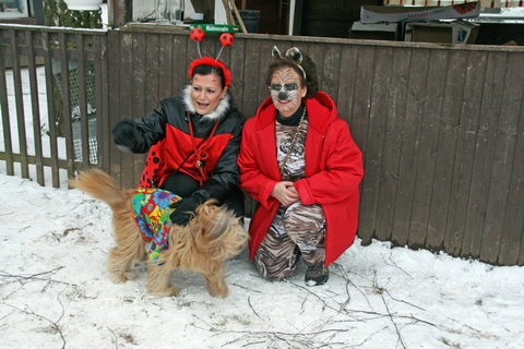 Kostümfest im Hundeverein. Maxi und ihre "Erzieherin" verkleidet auf dem Übungsplatz der Hundeschule.