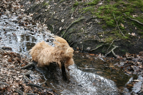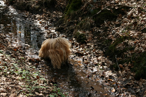 Wellness-Tour in Uhlenhorst! Wassertreten, Schlammbaden, Rückenmassage Maxi genießt den Ausflug und rächt sich für Kämmen, Bürsten, Zupfen.