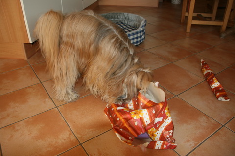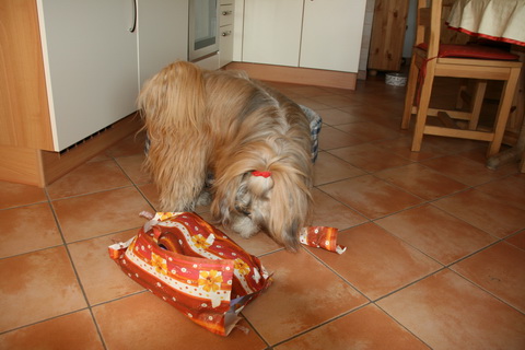 und ein Spieltier und einen Knochen usw. Danke an meine Aufpasser.
