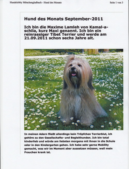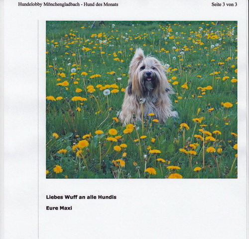 Unsere Maxi wurde in der Hundelobby Mönchengladbach zum "Hund des Monats" gewählt. | | | www.hundelobby-mg.de | |
