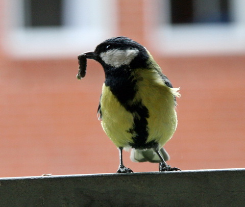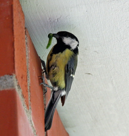 | Unsere Balkonmeise versorgt ihren Nachwuchs. | | | |