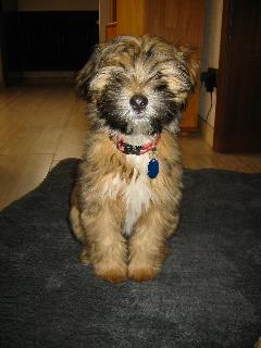 Aber was ist das für ein Hund! Die Tibeter nannten sie "Glücksbringer" und haben den seltenen Besuchern für ihren langen, gefährlichen Heimweg manchmal einen kleinen Hund migegeben. Tibet Terrier bringen nicht nur Glück, sondern auch Lachen ins Haus - sogar ihr Maul hat ein wenig nach oben gebogene Mundwinkel, so dass es immer ein wenig so aussieht als lache der Hund still in sich hinein. Auch erwachsene Hunde fallen ab und zu in eine kindhafte Fröhlichkeit und vergessen ihre Würde. Er ist ein relativ empfindlicher und sanftmütiger Hund, dem die Worte seines Menschen viel bedeuten. Allzu lautes Schimpfen schlägt ihm auf die Seele. Ebenso bringt er tibetische Gelassenheit, kann stundenlang geduldig neben seinen Menschen liegen und abwarten, was der Tag ihm schönes bringen wird. Er liebt kleine (auch selbstgestellte) Herausforderungen und Abwechslung, und wird geruhsam darauf warten.